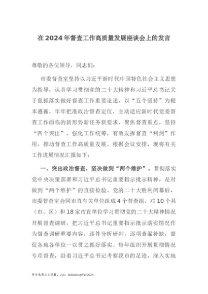 / 【七哥公文】2024年:在2024年督查工作高质量发展座谈会上的发言+更多免费公文+VX:QiGeGongWen2024