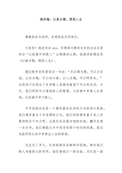 【七哥公文】2024年:演讲稿:以典为镜,照亮人生+更多免费公文+VX:QiGeGongWen2024