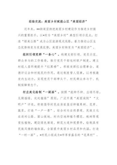 【七哥公文】2024年:经验交流:美丽乡村赋能山区“美丽经济”+更多免费公文+VX:QiGeGongWen2024