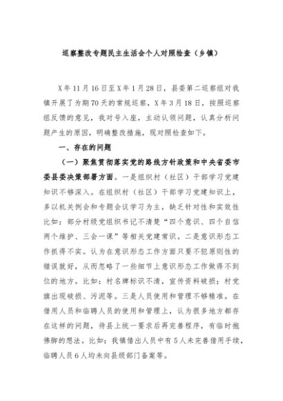 / 【七哥公文】2024年:巡察整改专题民主生活会个人对照检查(乡镇)+更多免费公文+VX:QiGeGongWen2024