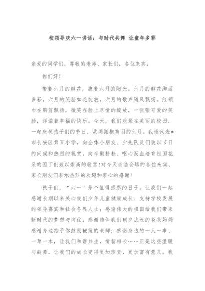 【七哥公文】2024年:校领导庆六一讲话:与时代共舞 让童年多彩+更多免费公文+VX:QiGeGongWen2024