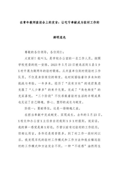 【七哥公文】2024年:在青年教师座谈会上的发言:让吃亏奉献成为驻村工作的鲜明底色+更多免费公文+VX:QiGeGongWen2024