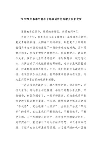 / 【七哥公文】2024年:市2024年春季中青年干部培训班优秀学员代表发言+更多免费公文+VX:QiGeGongWen2024