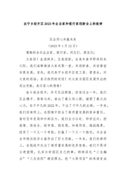 【七哥公文】2024年:在宁乡经开区2023年企业家和银行家迎新会上的致辞+更多免费公文+VX:QiGeGongWen2024