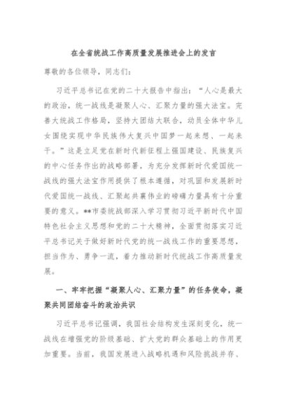 / 【七哥公文】2024年:在全省统战工作高质量发展推进会上的发言+更多免费公文+VX:QiGeGongWen2024