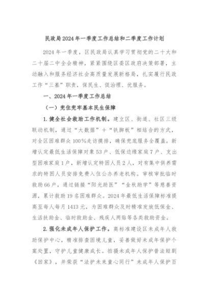 / 【七哥公文】2024年:民政局2024年一季度工作总结和二季度工作计划+更多免费公文+VX:QiGeGongWen2024