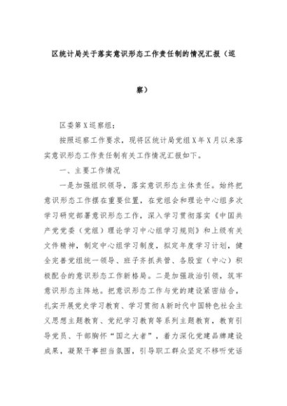 【七哥公文】2024年:区统计局关于落实意识形态工作责任制的情况汇报(巡察)+更多免费公文+VX:QiGeGongWen2024