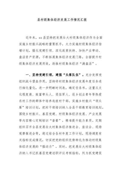 / 【七哥公文】2024年:县村级集体经济发展工作情况汇报+更多免费公文+VX:QiGeGongWen2024