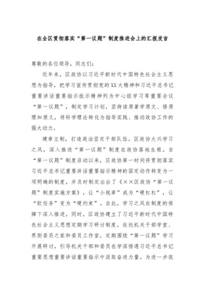 / 【七哥公文】2024年:在全区贯彻落实“第一议题”制度推进会上的汇报发言+更多免费公文+VX:QiGeGongWen2024