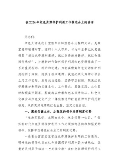 / 【七哥公文】2024年:在2024年红色资源保护利用工作推进会上的讲话+更多免费公文+VX:QiGeGongWen2024