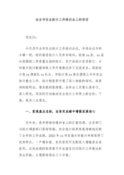 / 【七哥公文】2024年:在全市农业统计工作培训会上的讲话+更多免费公文+VX:QiGeGongWen2024