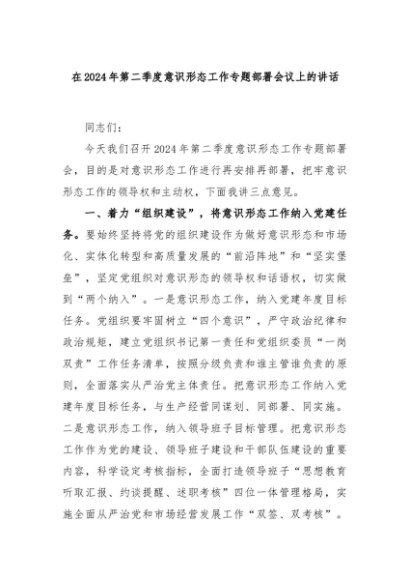 【七哥公文】2024年:在2024年第二季度意识形态工作专题部署会议上的讲话+更多免费公文+VX:QiGeGongWen2024