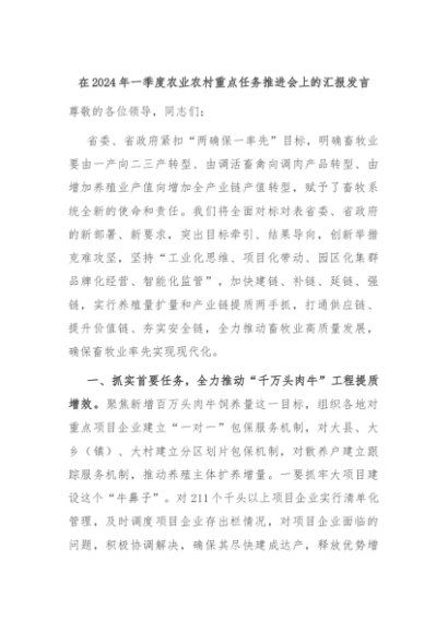 【七哥公文】2024年:在2024年一季度农业农村重点任务推进会上的汇报发言+更多免费公文+VX:QiGeGongWen2024