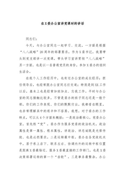 / 【七哥公文】2024年:在X委办公室讲党课时的讲话+更多免费公文+VX:QiGeGongWen2024