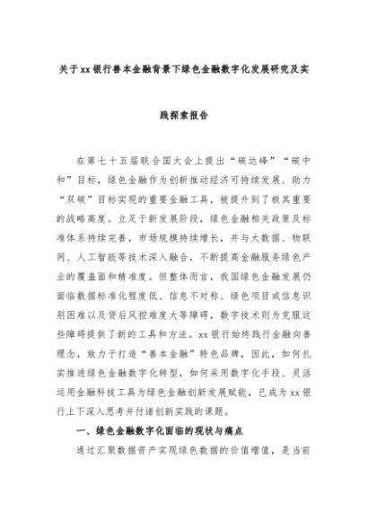 【七哥公文】2024年:关于xx银行善本金融背景下绿色金融数字化发展研究及实践探索报告+更多免费公文+VX:QiGeGongWen2024