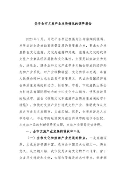 / 【七哥公文】2024年:关于全市文旅产业发展情况的调研报告+更多免费公文+VX:QiGeGongWen2024