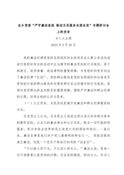 【七哥公文】2024年:在乡党委“严守廉洁底线 推动为民服务走深走实”专题研讨会上的发言--欧耀增+更多免费公文+VX:QiGeGongWen2024