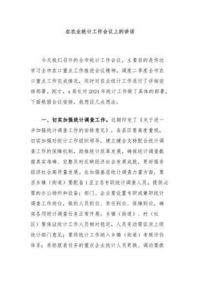 / 【七哥公文】2024年:在农业统计工作会议上的讲话+更多免费公文+VX:QiGeGongWen2024