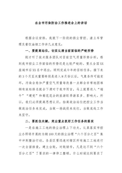/ 【七哥公文】2024年:在全市污染防治工作推进会上的讲话+更多免费公文+VX:QiGeGongWen2024