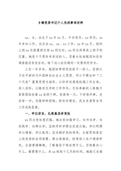 / 【七哥公文】2024年:乡镇党委书记个人先进事迹材料+更多免费公文+VX:QiGeGongWen2024