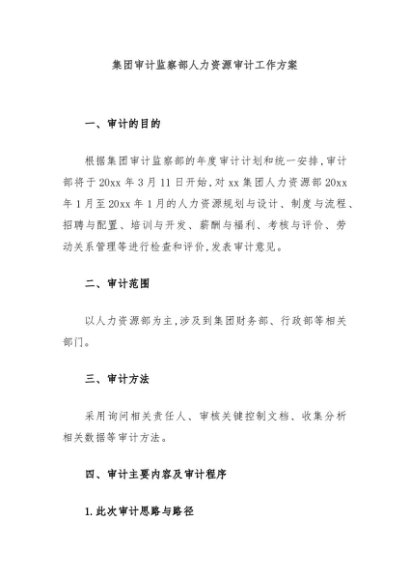 / 【七哥公文】2024年:集团审计监察部人力资源审计工作方案+更多免费公文+VX:QiGeGongWen2024