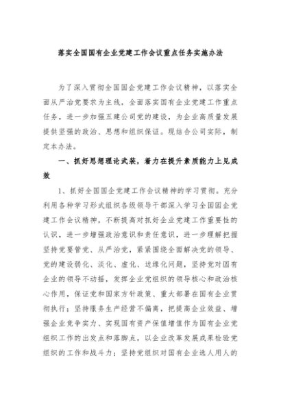 / 【七哥公文】2024年:落实全国国有企业党建工作会议重点任务实施办法+更多免费公文+VX:QiGeGongWen2024