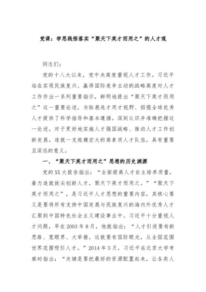 / 【七哥公文】2024年:党课:学思践悟落实“聚天下英才而用之”的人才观+更多免费公文+VX:QiGeGongWen2024
