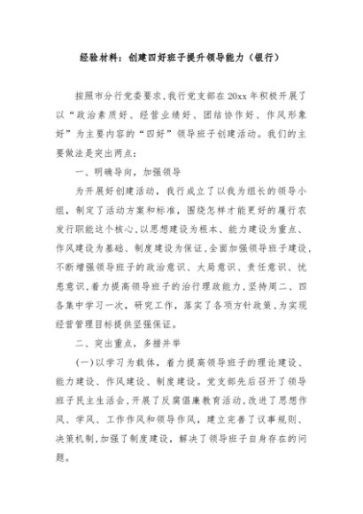 / 【七哥公文】2024年:经验材料:创建四好班子提升领导能力(银行)+更多免费公文+VX:QiGeGongWen2024