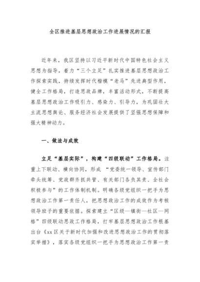 / 【七哥公文】2024年:全区推进基层思想政治工作进展情况的汇报+更多免费公文+VX:QiGeGongWen2024