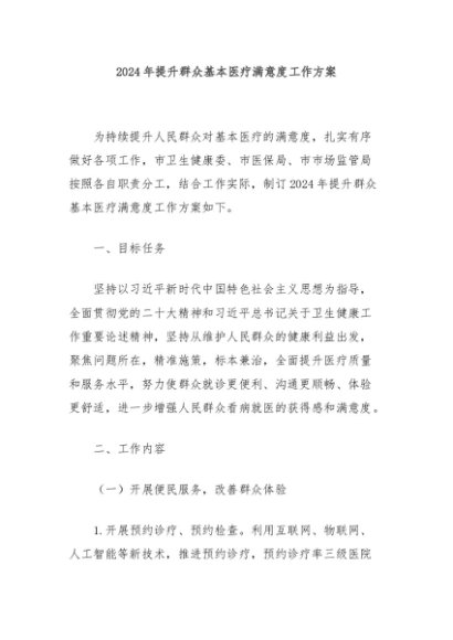 / 【七哥公文】2024年:2024年提升群众基本医疗满意度工作方案+更多免费公文+VX:QiGeGongWen2024