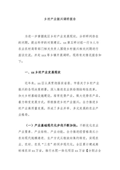 / 【七哥公文】2024年:乡村产业振兴调研报告+更多免费公文+VX:QiGeGongWen2024