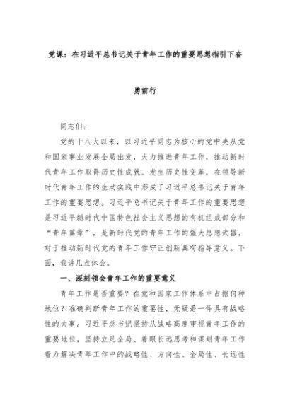 【七哥公文】2024年:党课:在习总书记关于青年工作的重要思想指引下奋勇前行+更多免费公文+VX:QiGeGongWen2024