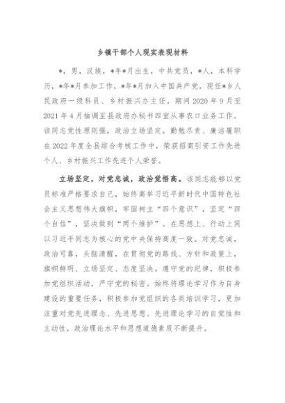 / 【七哥公文】2024年:乡镇干部个人现实表现材料+更多免费公文+VX:QiGeGongWen2024