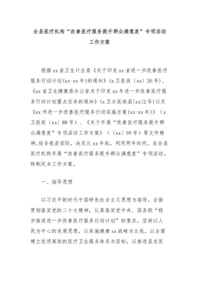 【七哥公文】2024年:全县医疗机构“改善医疗服务提升群众满意度”专项活动工作方案+更多免费公文+VX:QiGeGongWen2024
