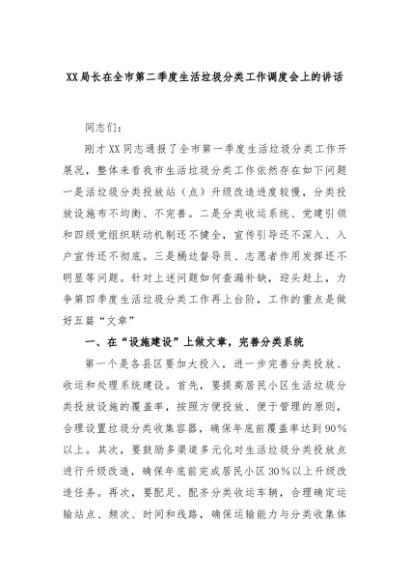 【七哥公文】2024年:XX局长在全市第二季度生活垃圾分类工作调度会上的讲话+更多免费公文+VX:QiGeGongWen2024