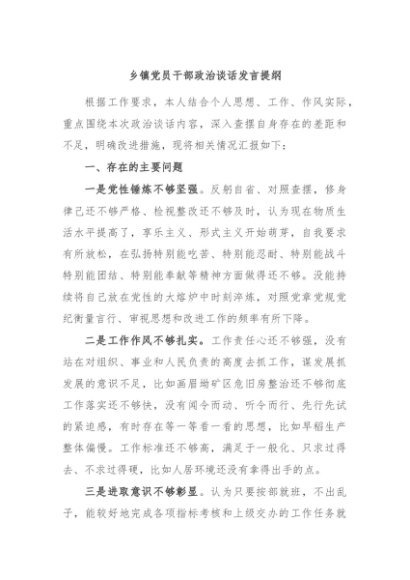 【七哥公文】2024年:乡镇党员干部政治谈话发言提纲+更多免费公文+VX:QiGeGongWen2024