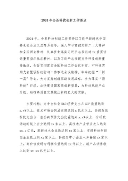/ 【七哥公文】2024年:2024年全县科技创新工作要点+更多免费公文+VX:QiGeGongWen2024