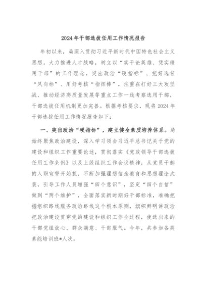 / 【七哥公文】2024年:2024年干部选拔任用工作情况报告+更多免费公文+VX:QiGeGongWen2024