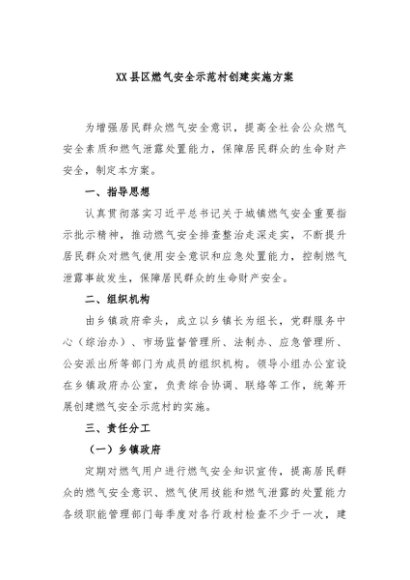 / 【七哥公文】2024年:XX县区燃气安全示范村创建实施方案+更多免费公文+VX:QiGeGongWen2024