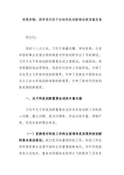 / 【七哥公文】2024年:党课讲稿:深学笃行实干加快科技创新推动高质量发展+更多免费公文+VX:QiGeGongWen2024