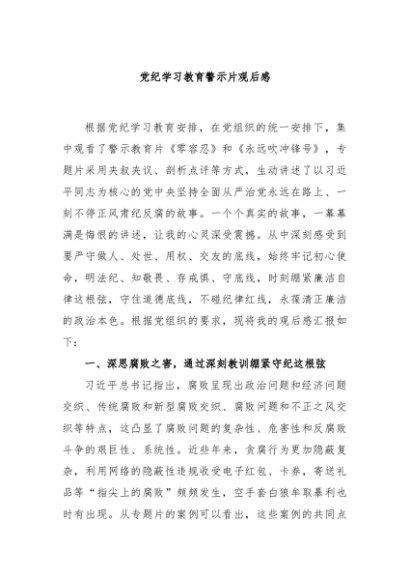/ 【七哥公文】2024年:党纪学习教育警示片观后感+更多免费公文+VX:QiGeGongWen2024