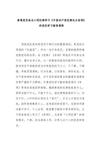 【七哥公文】2024年:普通党员结合六项纪律学习《中国共产党纪律处分条例》的党纪学习教育感悟+更多免费公文+VX:QiGeGongWen2024