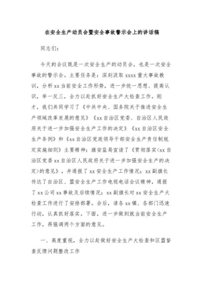 / 【七哥公文】2024年:在安全生产动员会暨安全事故警示会上的讲话稿+更多免费公文+VX:QiGeGongWen2024