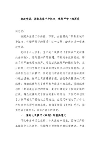 / 【七哥公文】2024年:廉政党课:聚焦忠诚干净担当,体悟严管下的厚爱+更多免费公文+VX:QiGeGongWen2024