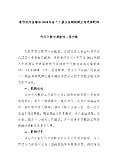 【七哥公文】2024年:某市医疗保障局2024年深入开展医保领域群众身边腐败和作风问题专项整治工作方案+更多免费公文+VX:QiGeGongWen2024