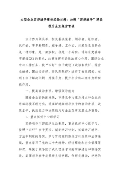 【七哥公文】2024年:大型企业四好班子建设经验材料:加强“四好班子”建设提升企业经营管理+更多免费公文+VX:QiGeGongWen2024