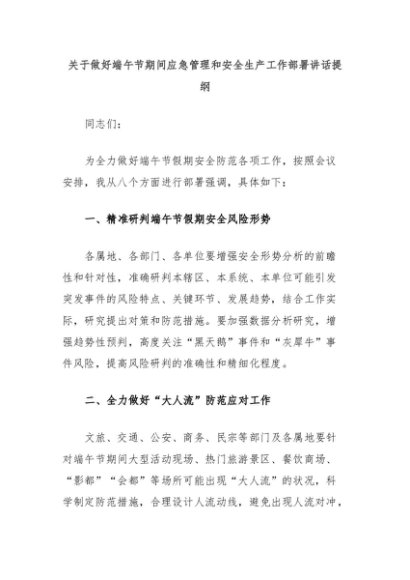 【七哥公文】2024年:关于做好端午节期间应急管理和安全生产工作部署讲话提纲+更多免费公文+VX:QiGeGongWen2024