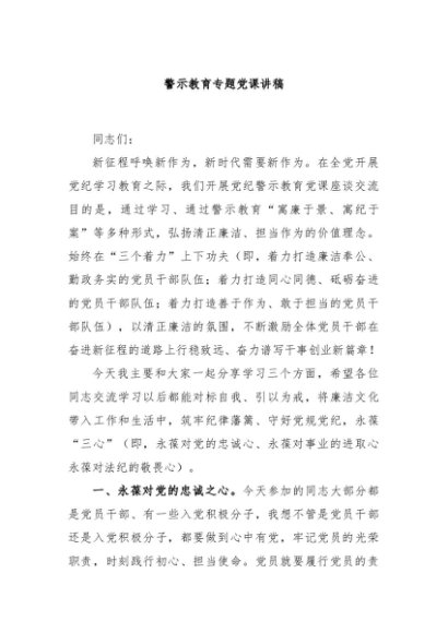 / 【七哥公文】2024年:警示教育专题党课讲稿+更多免费公文+VX:QiGeGongWen2024