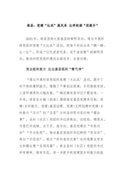 / 【七哥公文】2024年:道县:党建“比武”展风采 比学赶超“促提升”+更多免费公文+VX:QiGeGongWen2024