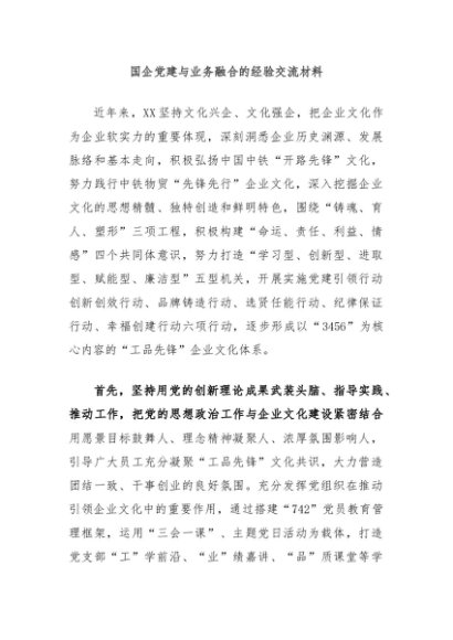 / 【七哥公文】2024年:国企党建与业务融合的经验交流材料+更多免费公文+VX:QiGeGongWen2024